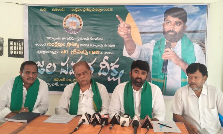 దేశంలోనే అత్యంత వెనుకబడిన మన ప్రాంతానికి జీవనాడైన గుండ్రేవుల ప్రాజెక్టు సాధనకై ఈ నెల 24న జరగనున్న ‘జల సమర దీక్ష’కు జిల్లా నలుమూలల నుండి ప్రజలు, రైతులు, యువత, విద్యార్థులు విస్తృతంగా కదిలి రావాలని కర్నూలు ప్రగతి సమితి వ్యవస్థాపక అధ్యక్షుడు ఎం.శ్రీహర్ష పిలుపునిచ్చారు. శనివారం బిర్లా కాంపౌండ్లోని కేపిఎస్ కార్యాలయంలో ఆయన విలేకరుల సమావేశం నిర్వహించారు. ఈ సందర్భంగా ఆయన మాట్లాడుతూ దేశానికి స్వాతంత్య్రం వచ్చి ఎనిమిది దశాబ్దాలు గడిచినా, జిల్లాల నుండి హేమాహేమీలైన నేతలు ప్రాతినిధ్యం వహించినప్పటికీ దారిద్ర్య రేఖ కంటే దిగువననే ప్రజలు జీవనం సాగించాల్సి వస్తోందని ఆవేదన వ్యక్తం చేశారు. పాలకులు చూపుతున్న వివక్షకు వ్యతిరేకంగా జిల్లావాణిని బలంగా వినిపించే సమయం వచ్చిందని చెప్పారు. ఈ నెల 24న ఉదయం 9:30 గంటలకు రాజ్ విహార్ ఆర్టీసీ పాత డిపో నుండి ధర్నా చౌక్ వరకు రైతులు, యువత, విద్యార్థులతో భారీ ర్యాలీ నిర్వహించి, అనంతరం 48 గంటల జల సమర దీక్ష చేపట్టనున్నట్లు తెలిపారు. అన్ని రాజకీయ పార్టీలకు, ప్రజా సంఘాలకు ఆహ్వానాలు పంపినట్లు వెల్లడించారు. మన ప్రాంత అభ్యున్నతికి పార్టీ భేదాలు అన్నింటిని పక్కనపెట్టి ప్రతి ఒక్కరూ ముందుకు రావాలని శ్రీహర్ష కోరారు. ఈ కార్యక్రమంలో సినియర్ ప్రొఫెసర్ మన్సూర్ రహేమాన్, నౌషాద్, శ్రీనివాసులు, రామాంజనేయులు, ప్రేమ్, ధర్మరాజు తదితరులు పాల్గొన్నారు.